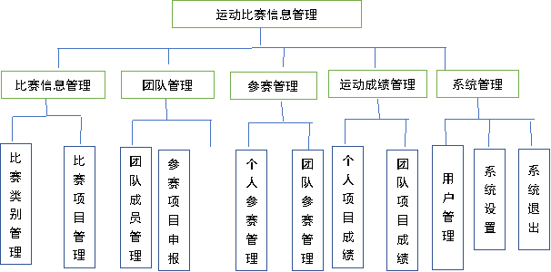 系统功能模板主要有比赛信息管理、团队管理、参赛管理、运动成绩管理和系统管理等。