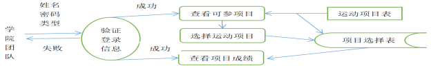 用户可以选择不同的身份登录(系统管理员、团队管理员、项目管理员、运动员)。运动员报名参赛和成绩查询。团队管理员进行团队管理、运动员管理和运动成绩查询。项目管理员管理运动比赛信息和参赛管理。系统管理员对系统进行用户管理和系统维护。
